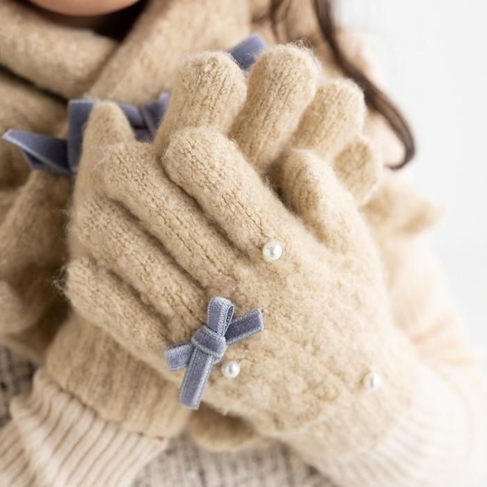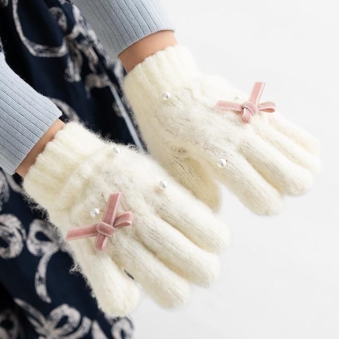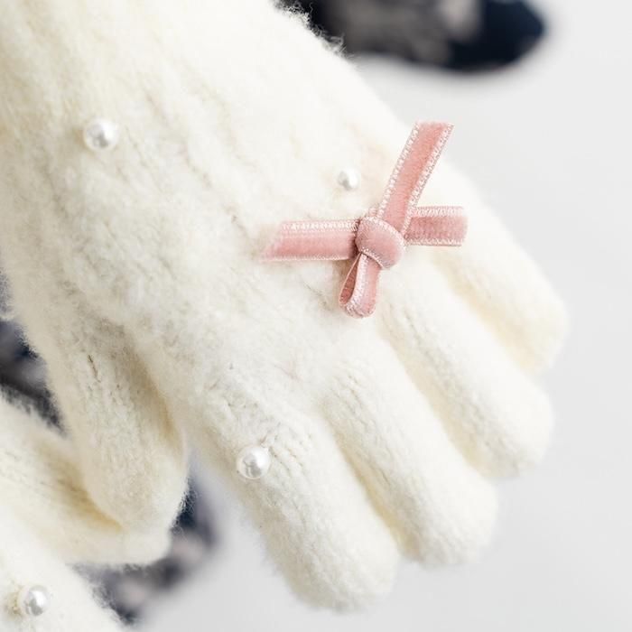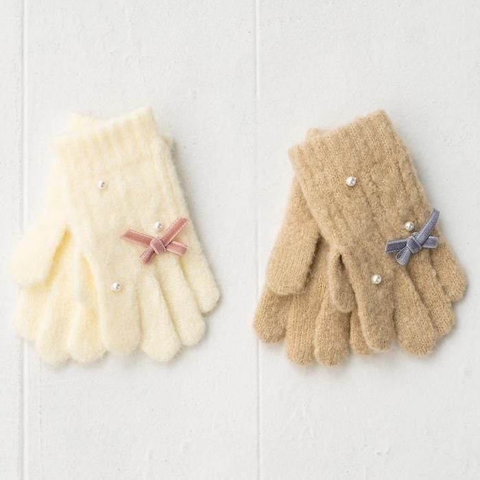 【2025秋冬新作】パール付きリボン手袋(3523301)/M(5才から) 1サイズ展開